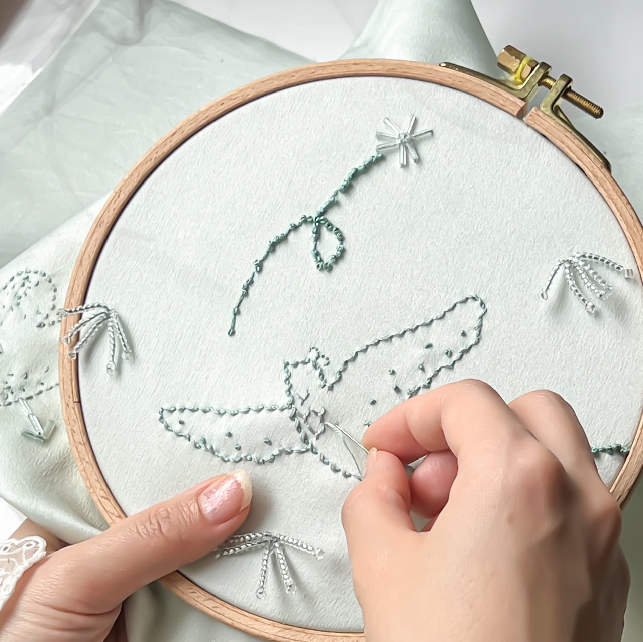 ウェディングドレスブランド〈メゾンスズ〉のデザイナー・野原さんのエスプリと、レンミッコの刺繍技術が出会う特別なワークショップ。