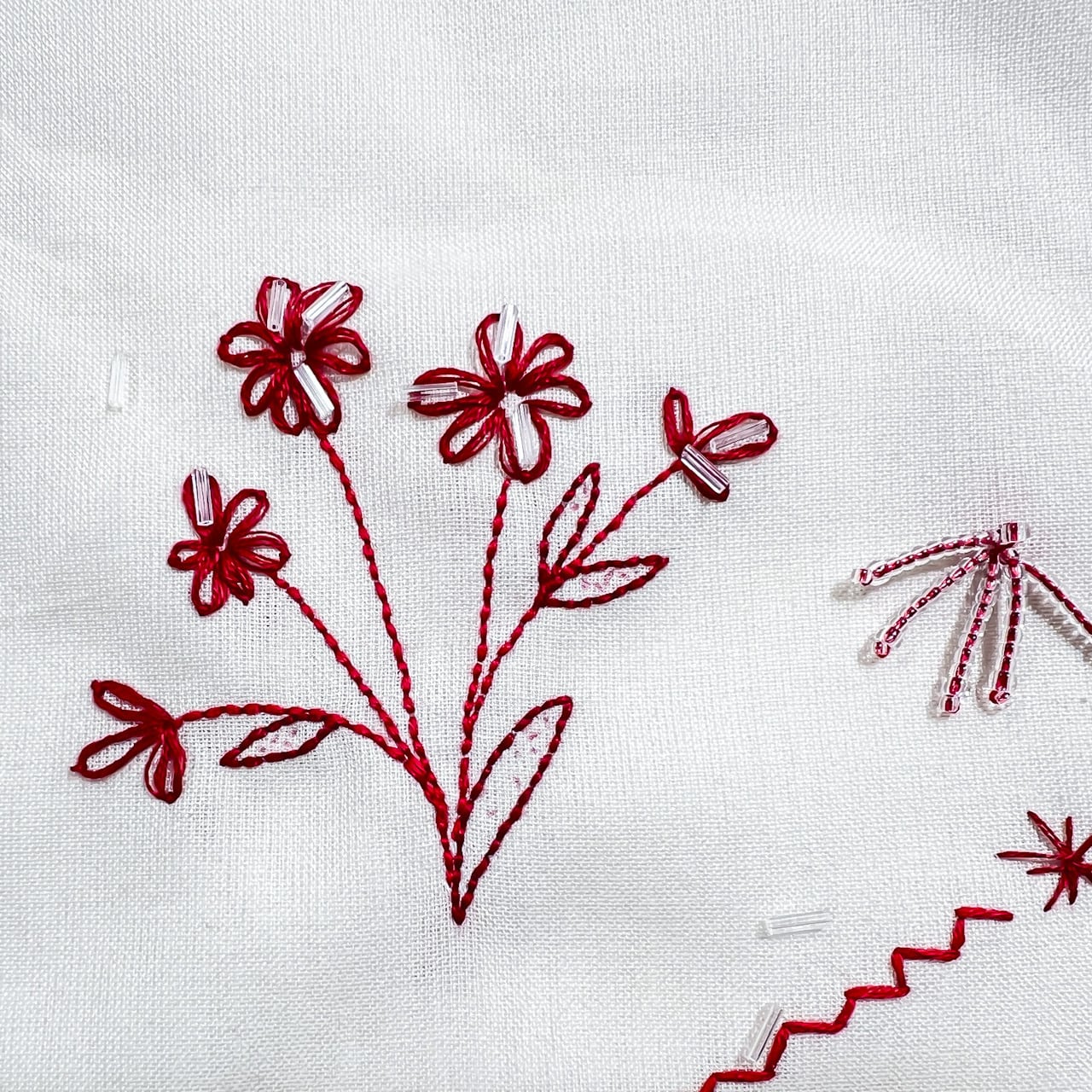 野原さんが描く可愛らしい線を、シンプルなステッチで一針ずつなぞっていく内容で、初めての方でも安心してご参加いただけます。