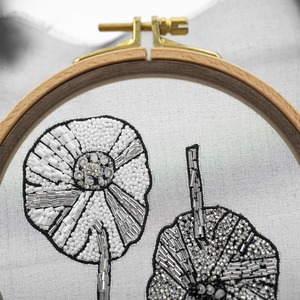 シルクオーガンジーに既にステッチが施されています。そのステッチの内側にお好きな刺繍をしていただくだけで、オリジナルワッペンに!