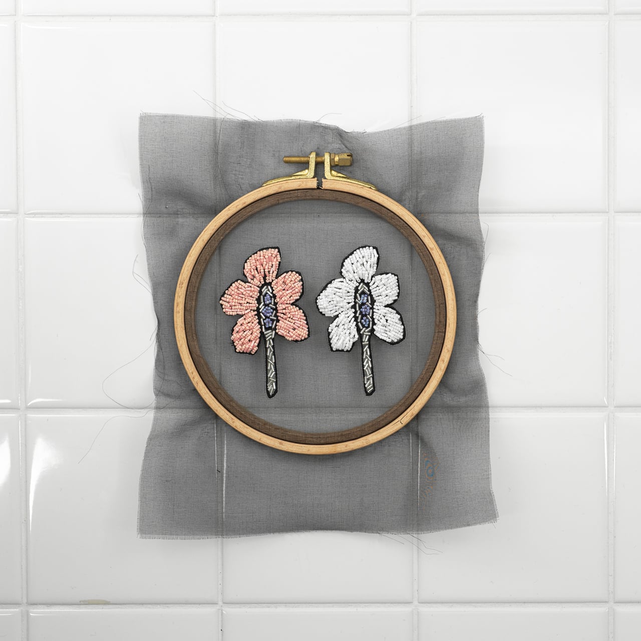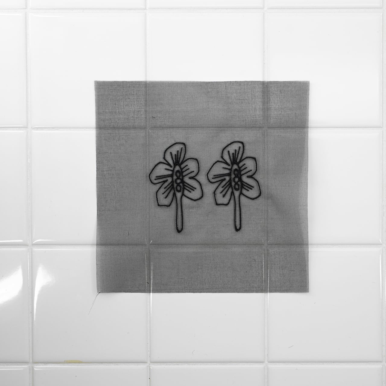 シルクオーガンジーに既にステッチが施されています。そのステッチの内側にお好きな刺繍をしていただくだけで、オリジナルワッペンに!