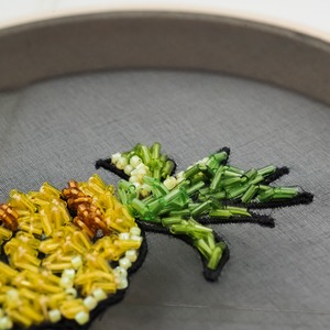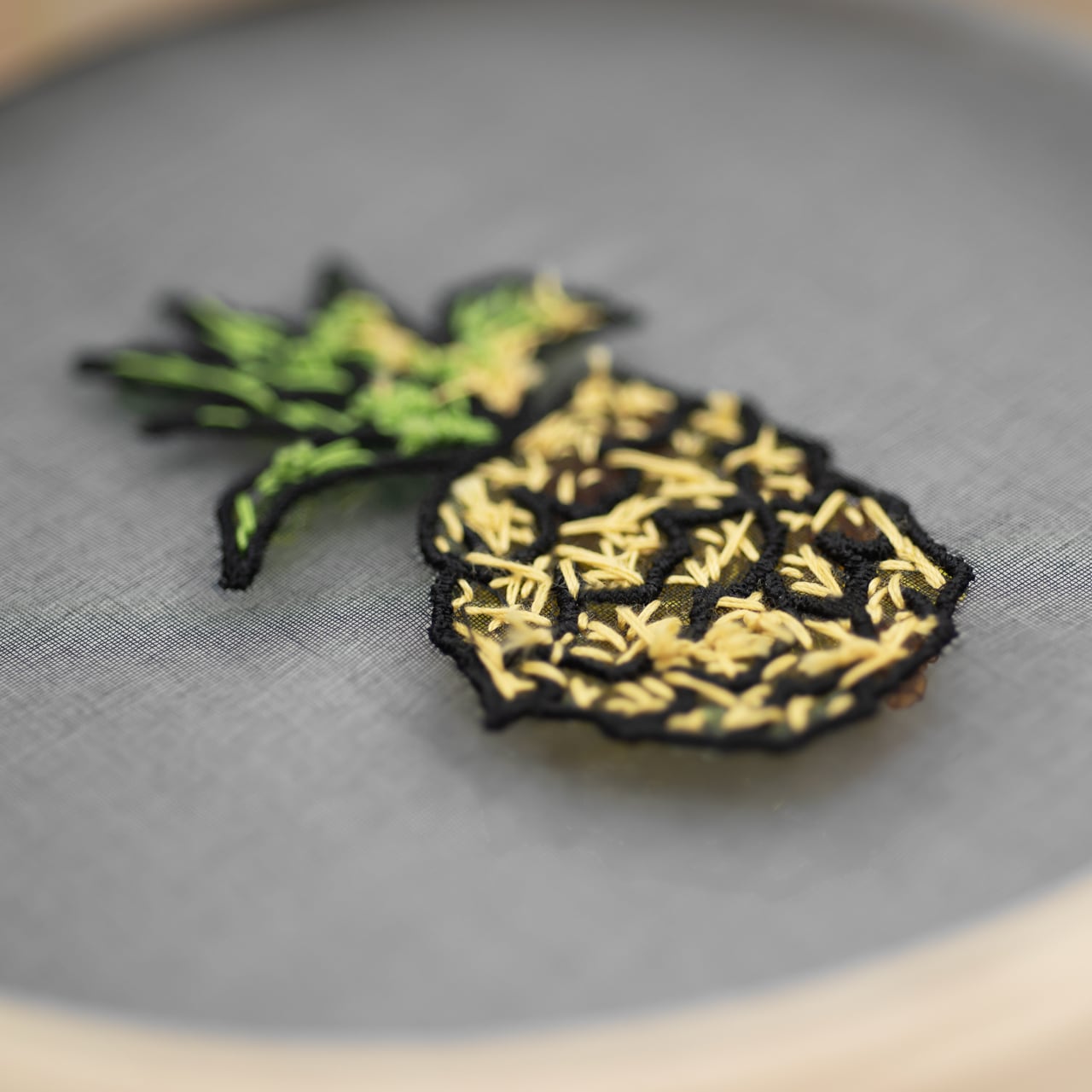 シルクオーガンジーに既にステッチが施されています。そのステッチの内側にお好きな刺繍をしていただくだけで、オリジナルワッペンに!