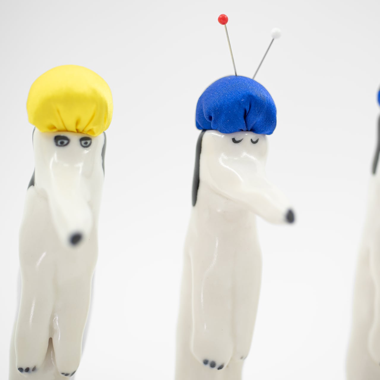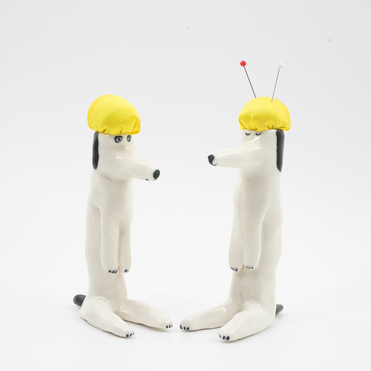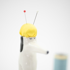 こちらの「お座りピンクッション犬」は、頭の部分が針山になっています。