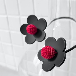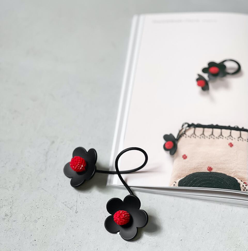 黒マットの花びらに真っ赤な花芯は「かわいい」で表現するのもちょっと違う…ファンの心をくすぐるテイストしっかり出ています。作りたい!持ち歩きたい!そんなチャームを一緒に作りましょう。