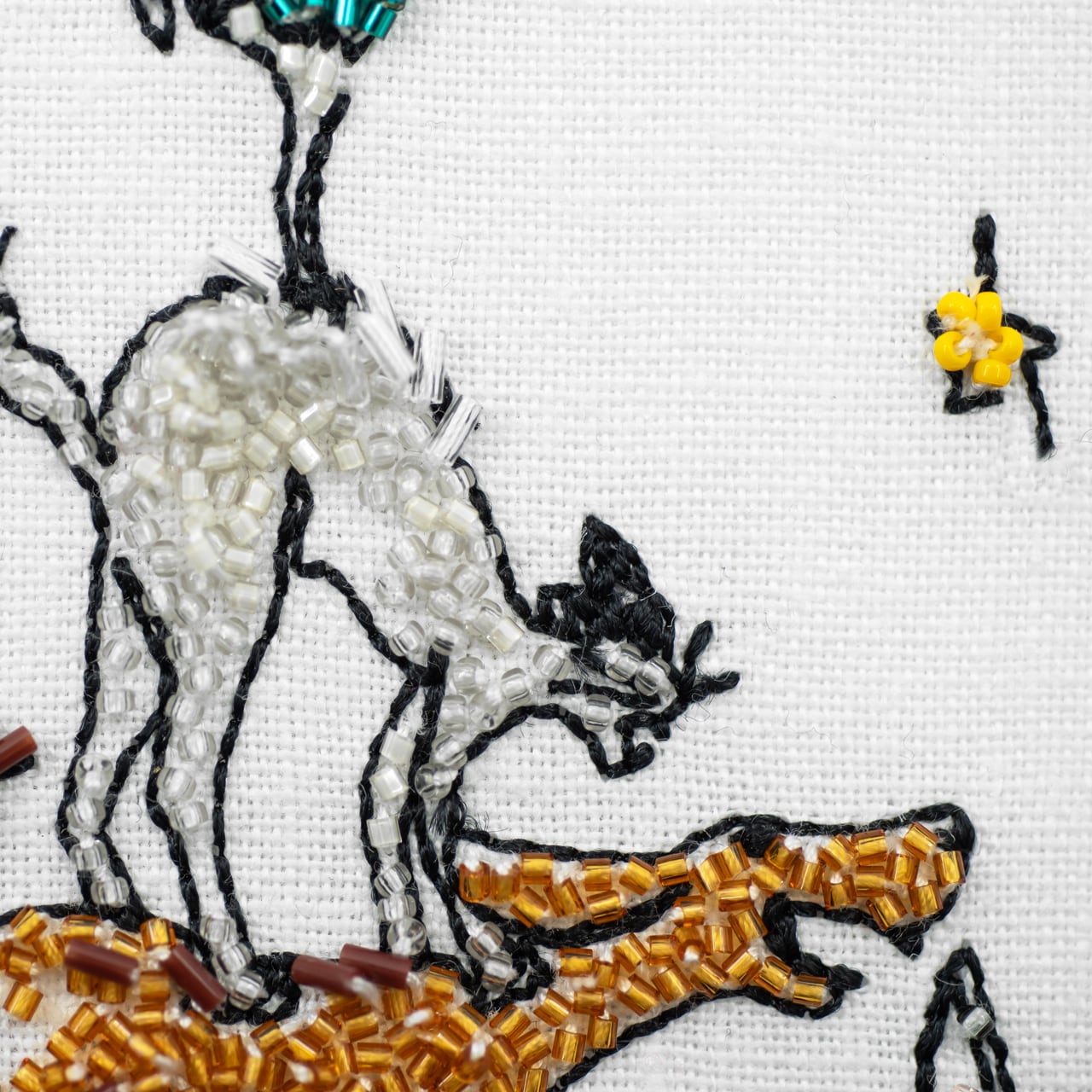 ちょっと毛並みを意識して刺繍してみると、動きが出てきます。なんだか音まで聞こえてきそうですよね?!