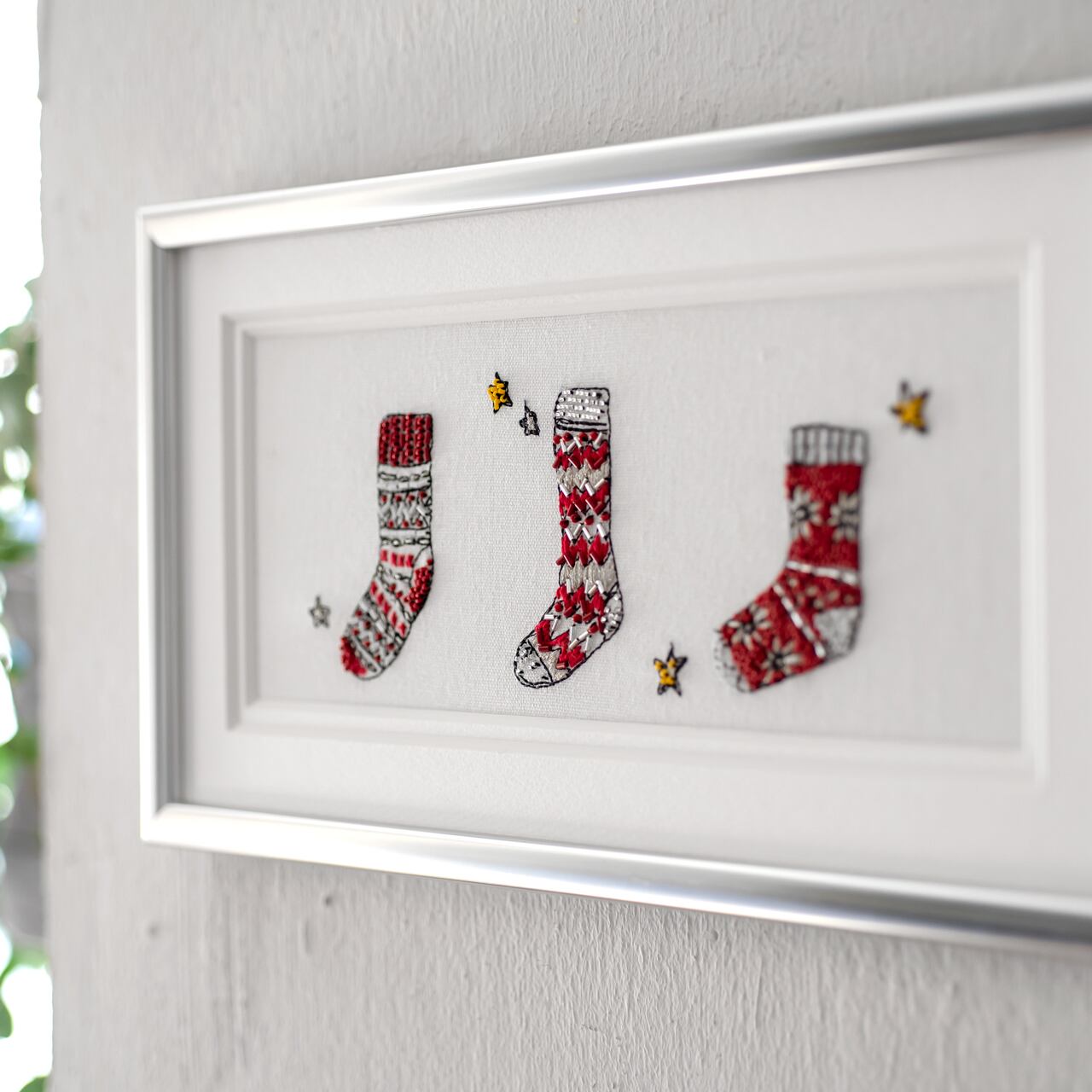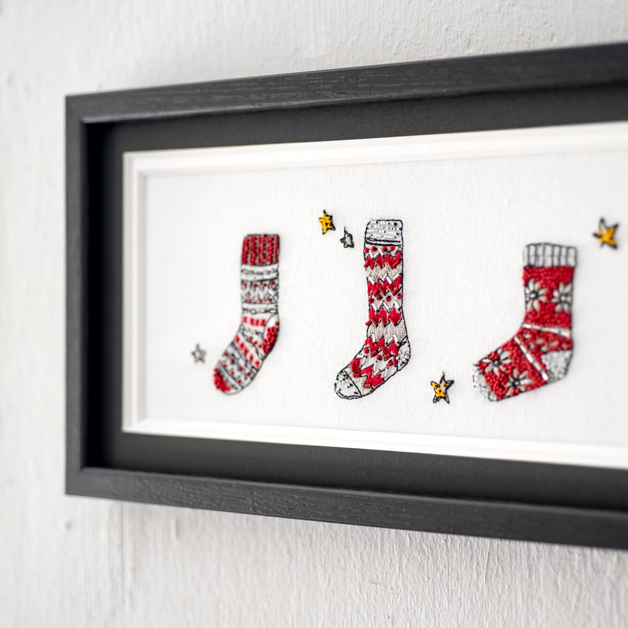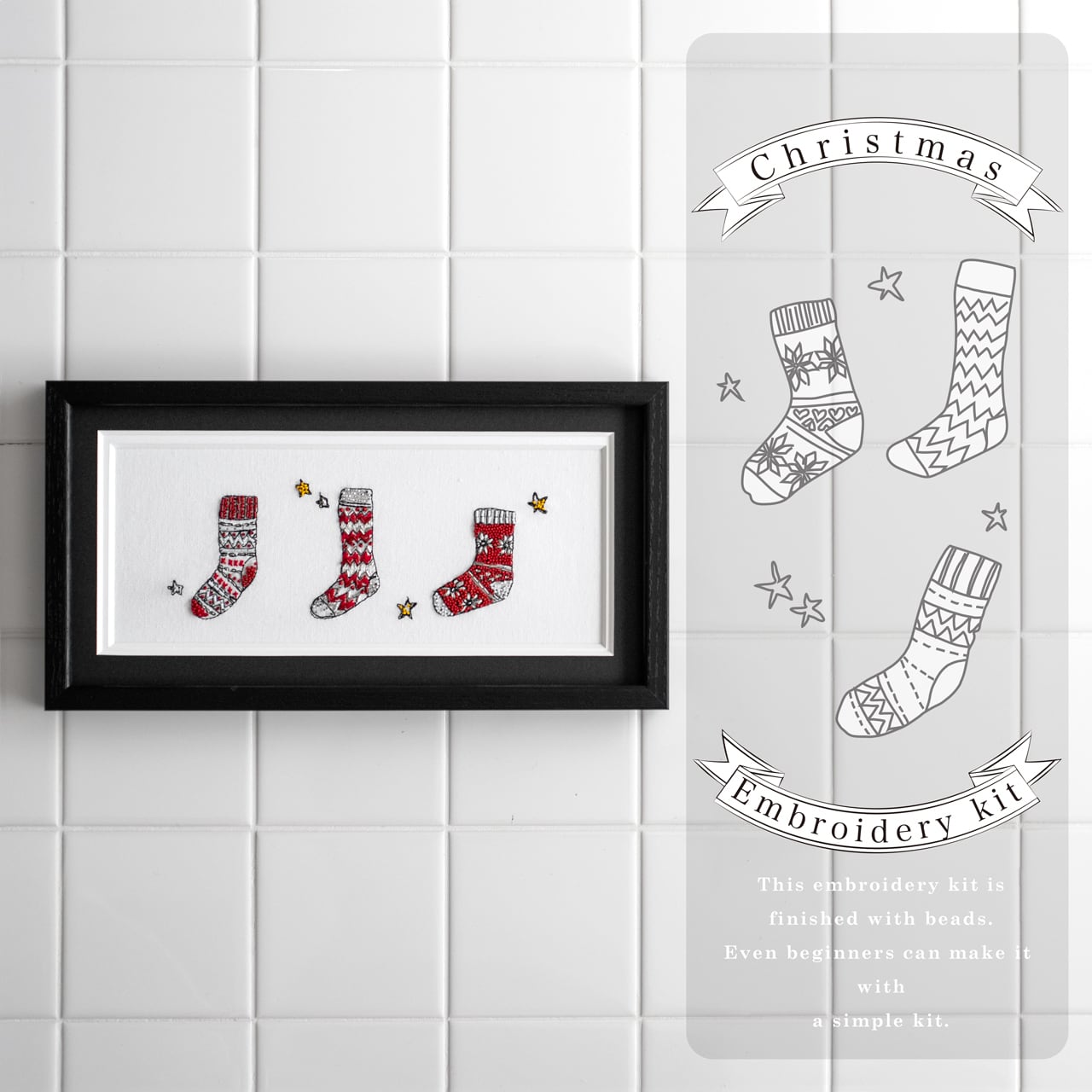 ⚪️ ご注意:額縁と額マットは別途受注商品になります。ご希望の方は “ 2021 クリスマスの刺繍【靴下の刺繍キット用の額装】” からお求めください。