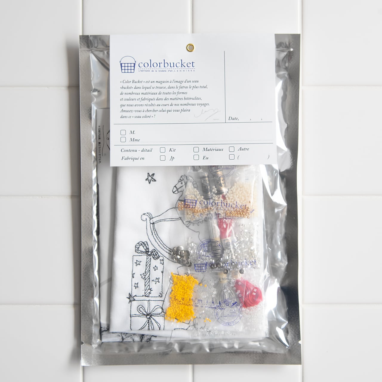 ⚪️ ご注意:糸切りハサミ、縫い針9号、刺繍針5号、刺繍針3号、刺繍枠をご自身でご用意ください。